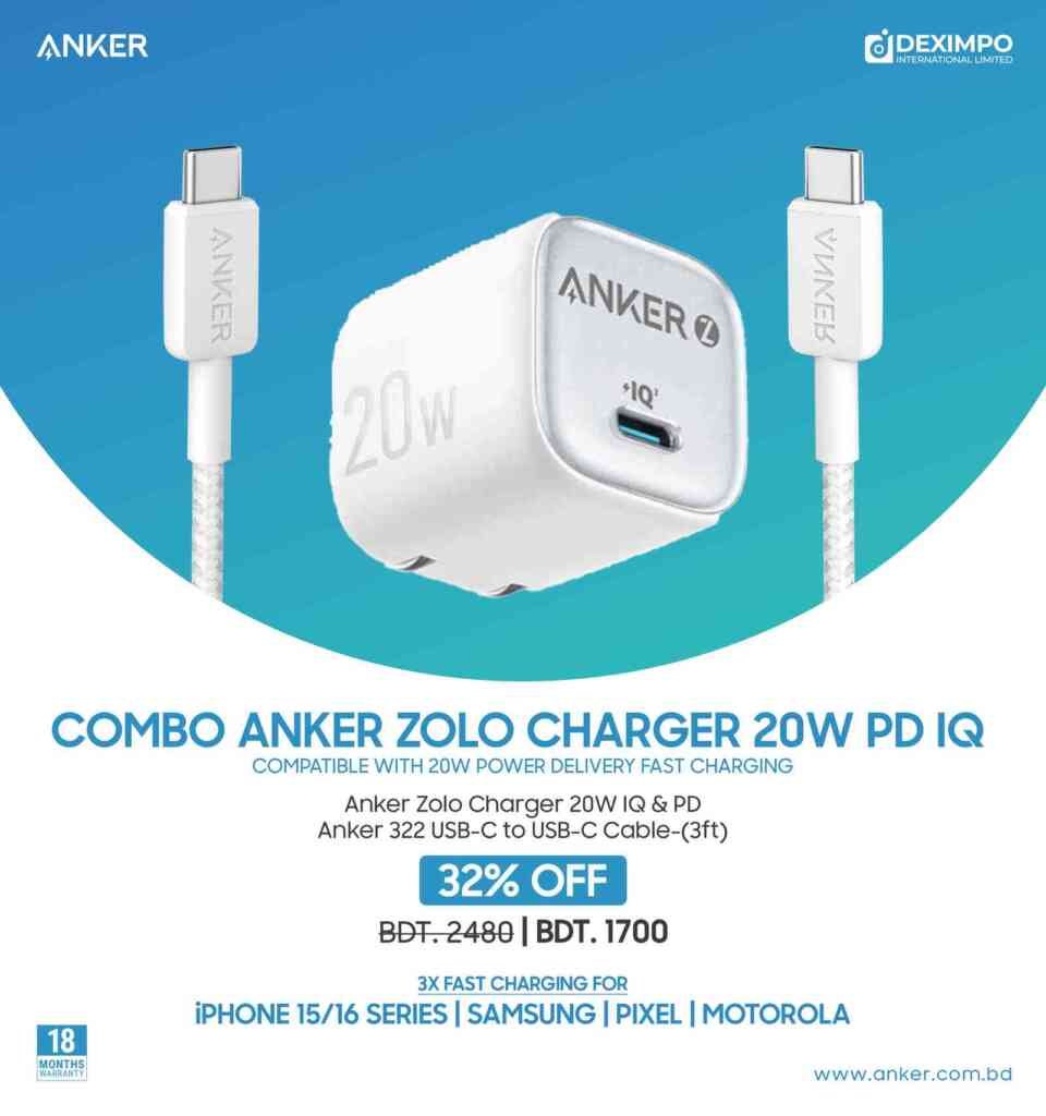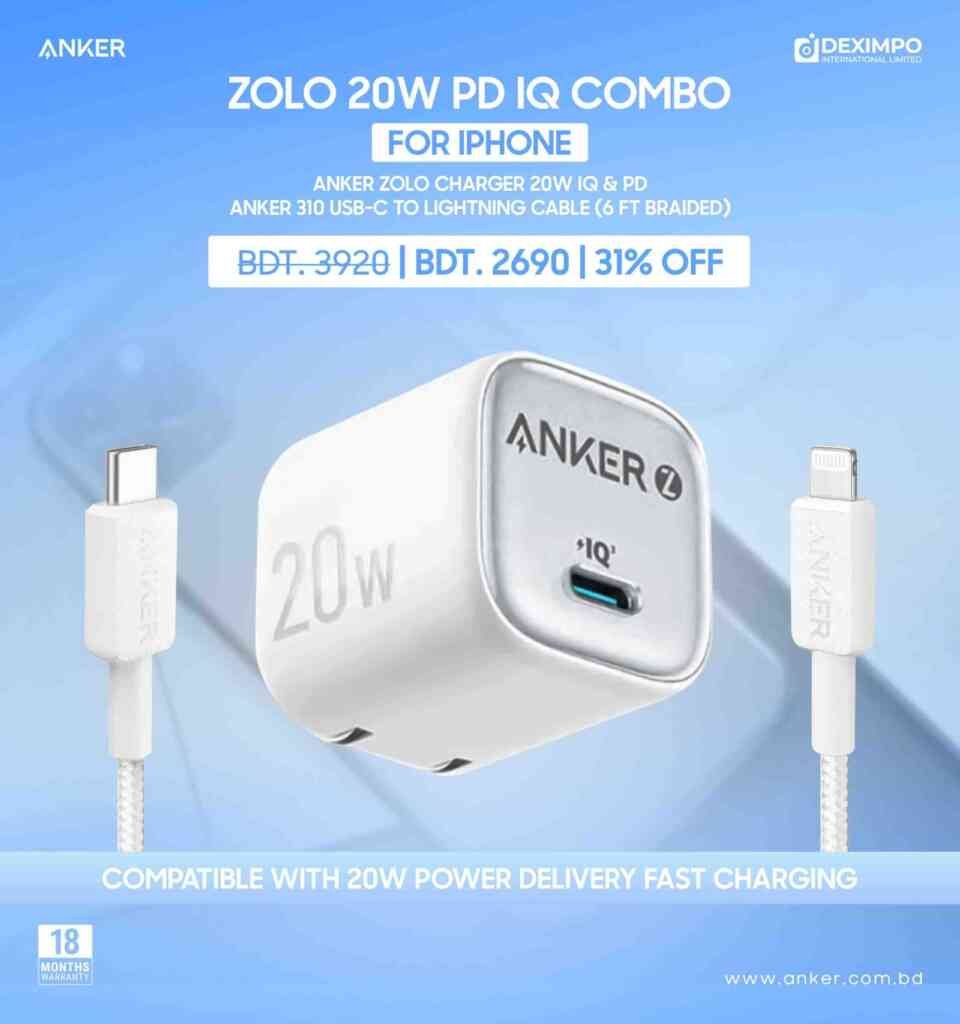 Combo Anker Zolo Charger 20W IQ & PD iPhone 14 Series and Below – 2