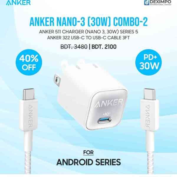 Anker Nano 3 Combo -2 (30w) For Android and iPhone 16/15 Series