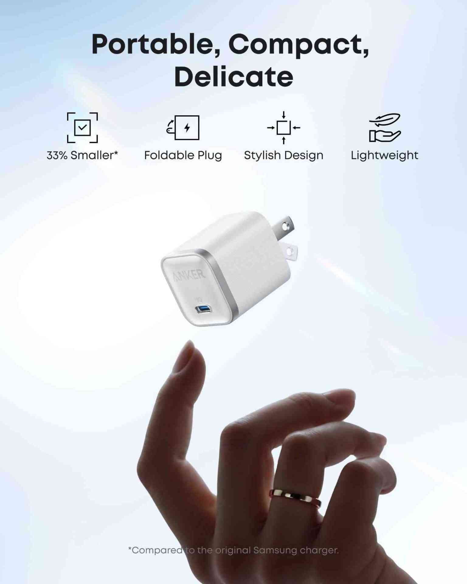 This pocket-sized charger features a foldable plug for easy storage and is exceptionally lightweight. It combines convenience with style, making it the perfect companion for on-the-go charging.