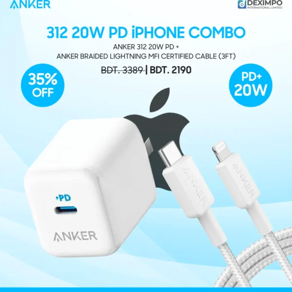 Anker 312 20W PD Combo – For iPhone with Braided Cable 3,390.00৳  Original price was: 3,390.00৳ .2,190.00৳ Current price is: 2,190.00৳ .