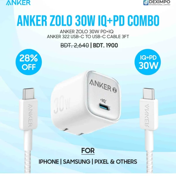 Anker Zolo 35W PD PPS GAN Combo Cable + Charger ( For iPhone/Samsung/Pixel )