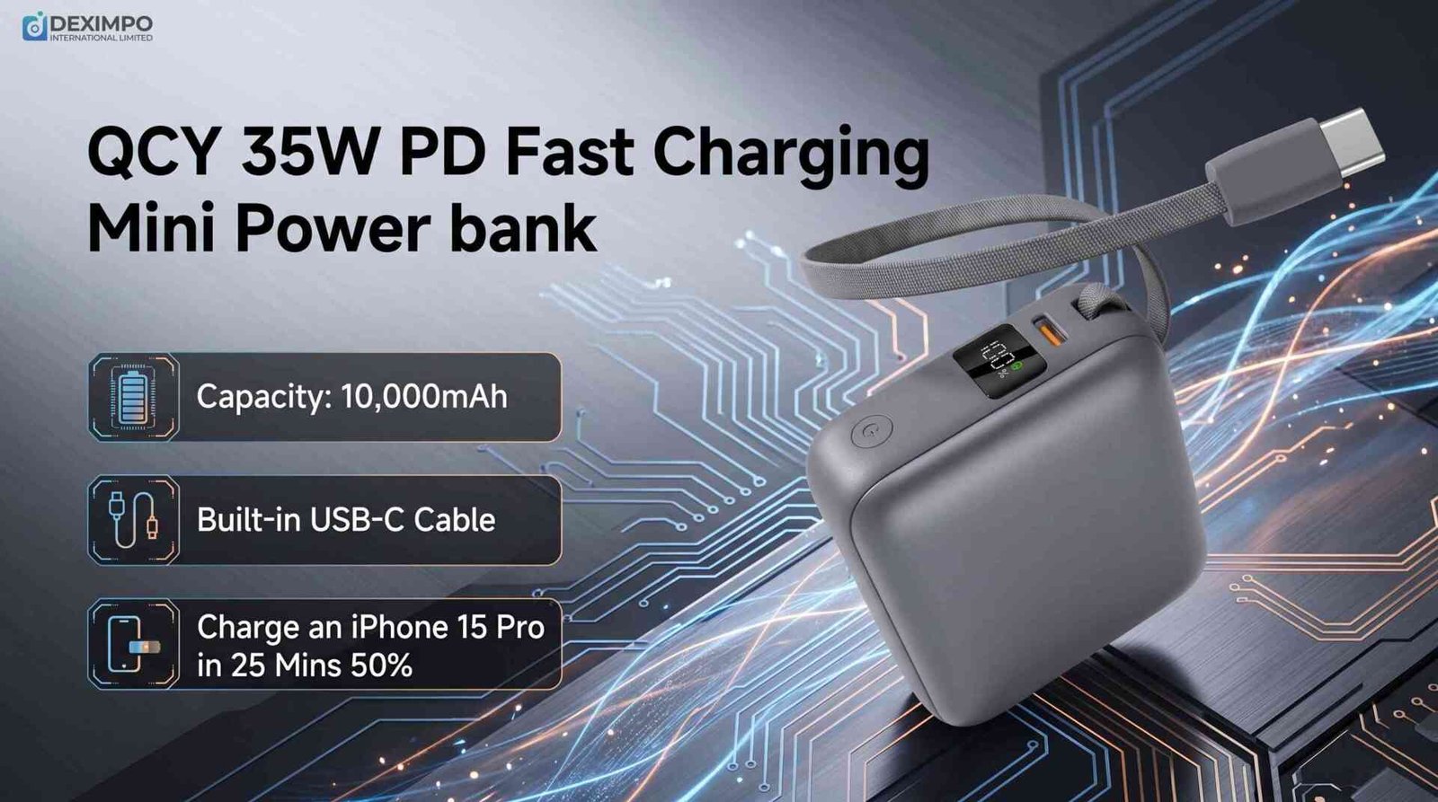 Stay powered anytime, anywhere with the QCY 35W PD Fast Charging Mini Power Bank. Designed for speed, portability, and safety, this compact 10,000mAh power bank delivers ultra-fast charging for smartphones, tablets, and even laptops. With a built-in USB-C cable and smart digital display, it ensures convenience and real-time power tracking—perfect for everyday use and travel.
