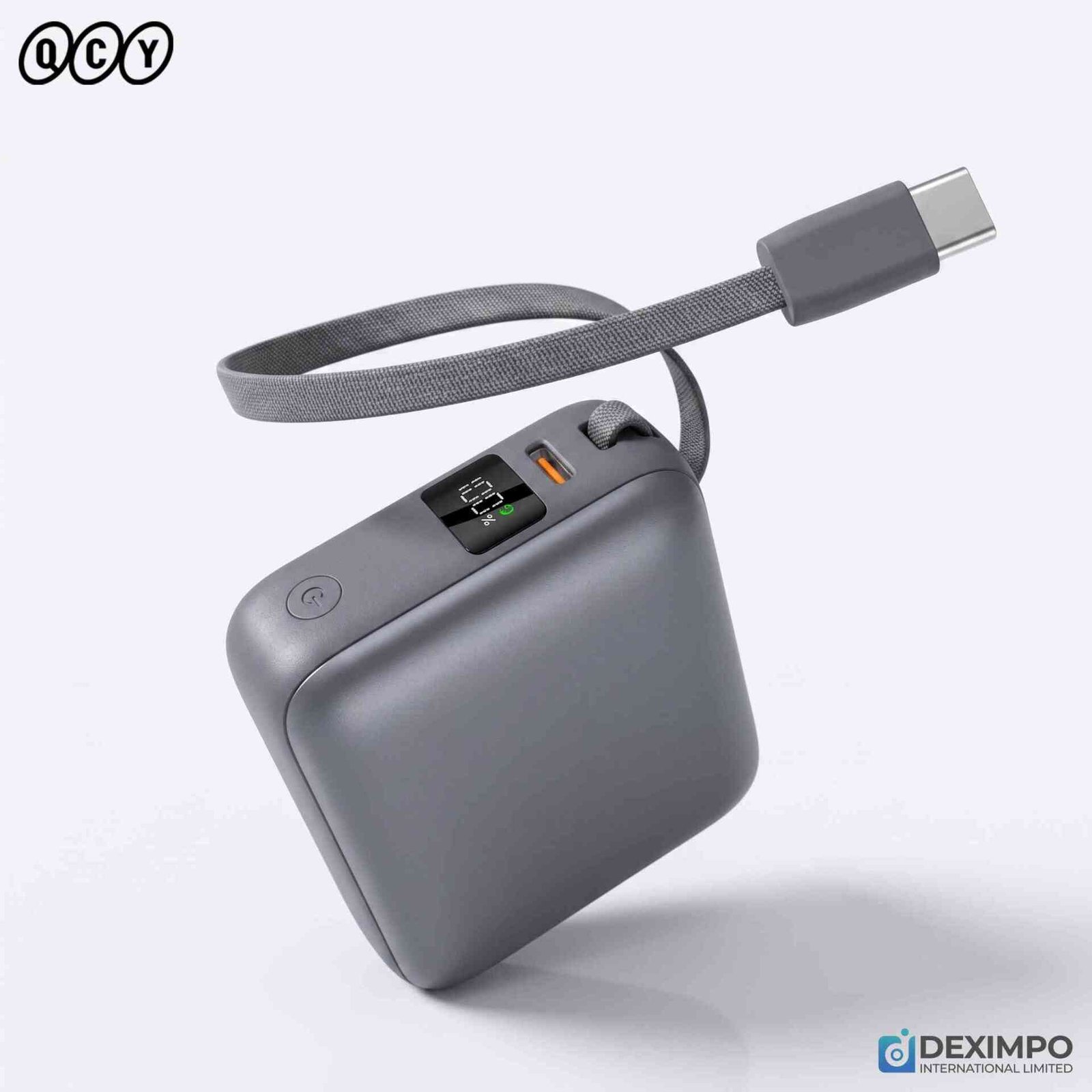 QCY 35W PD Fast Charging Mini Power Bank 10000mAh with Built-in USB-C Cable & Digital Display