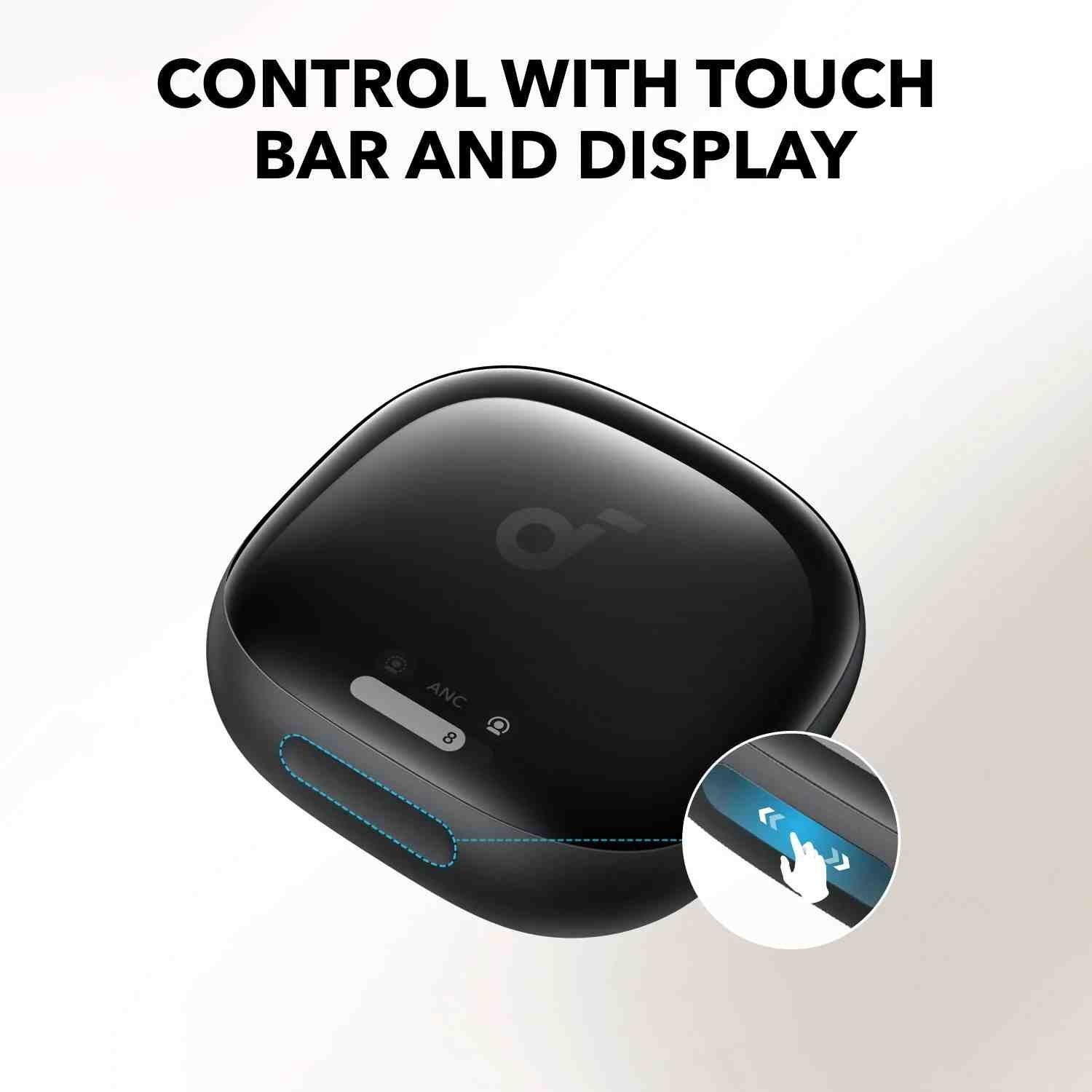 • Effortless Controls: The case’s touch bar and display let you fine-tune the noise-cancelling levels at any time with a simple swipe on the case.